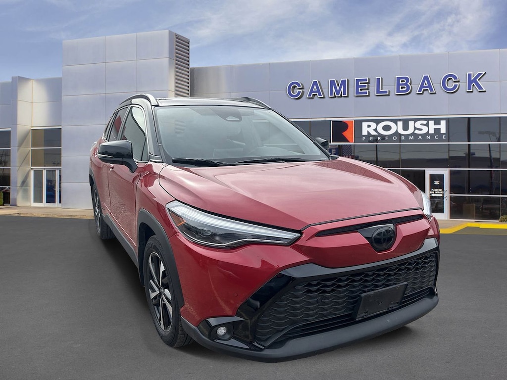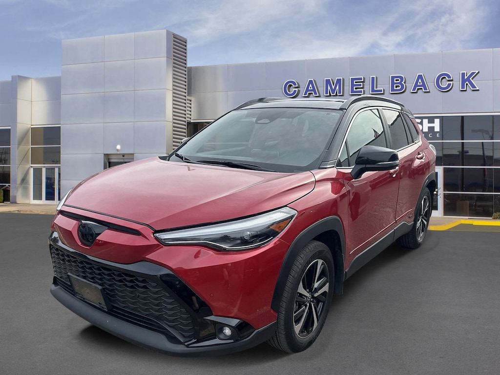 This used 2023 Corolla Cross stands out with its 2.0L I4 hybrid engine delivering 150 horsepower, paired with a smooth continuously variable transmission (CVT) featuring dual shift mode for responsive handling. Its all-wheel-drive system with brake-actuated limited slip differential ensures confident traction in diverse driving conditions, making it ideal for city commutes and weekend adventures alike. Safety is paramount with a comprehensive suite of features including adaptive cruise control, lane departure warning, lane keeping assist, front collision mitigation, and cross-traffic alert, all working seamlessly to keep you and your passengers protected. The driver monitoring system adds an extra layer of awareness, helping maintain focus on the road. Inside, the cabin offers bucket seats with a pass-through rear bench, providing flexible space for passengers and cargo. Convenience is enhanced by keyless entry and start, a back-up camera, and smart device integration with Bluetooth and WiFi hotspot capabilities, keeping you connected wherever you go. Finished with sleek aluminum wheels and a sporty rear spoiler, this Corolla Cross combines style with substance for the modern driver who demands more from their SUV.